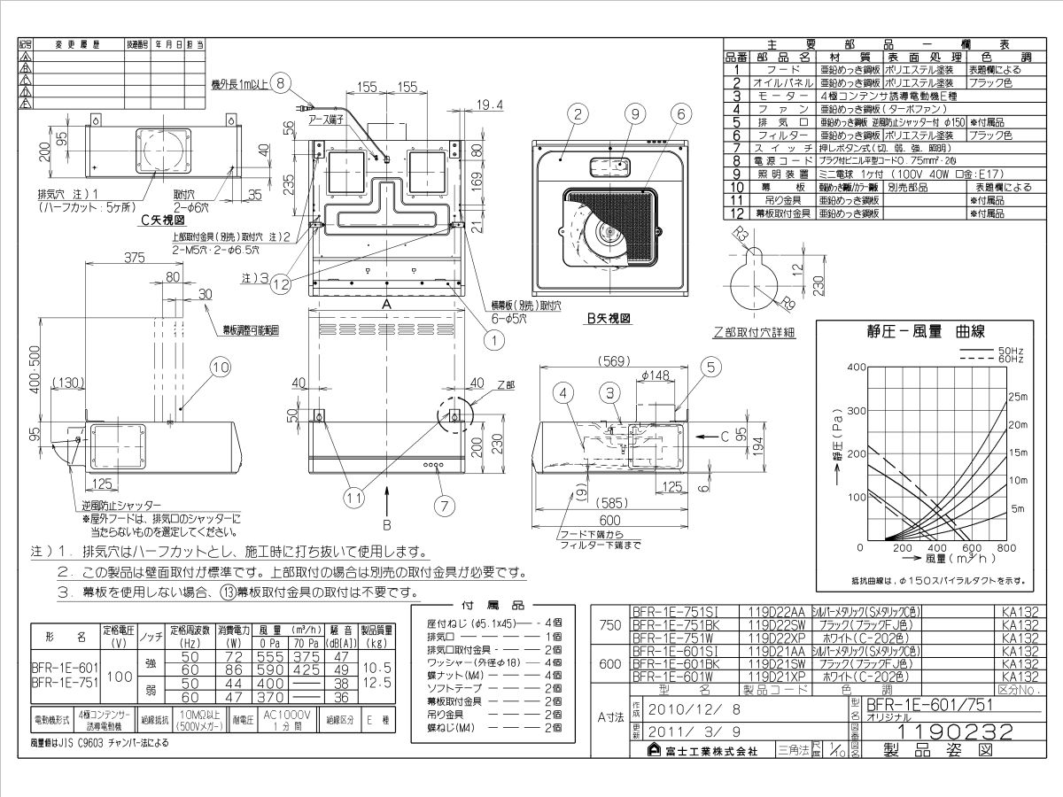 ■こちらの商品は、代金引換でのご決済は、お受けできません。(代金引換以外のご決済方法で、ご購入ください)※代引ご決済でご購入頂きました場合は、勝手ではございますが、キャンセル処理させて頂きますことを予めご了承ください。■当ショップは設置・取付工事、撤去・処分工事は請け負っておりません。(機器販売のみとなります) カクダイ 【FJ-BFR1E601W】 浅型レンジフード ホワイト色・間口600mm用・ターボファン・富士工業株式会社製 ●商品仕様・外形寸法 幅600×高さ200×奥行600mm・質量 約10.5kg・接続ダクト径 φ150・定格電圧 100V・電源コード プラグ付ビニル平形コード0.75sq×2芯・消費電力 (強)50Hz:72W/60Hz:86W (弱)50Hz:44W/60Hz:47W・騒音 (強)50Hz:47dB/60Hz:49dB (弱)50Hz:38dB/60Hz:36dB・モーター 4極コンデンサ誘導電動機E種・ファン ターボファン(亜鉛めっき鋼板)・照明 ミニ電球1個(100V40W 口金E17)・スイッチ 押しボタン式(切、弱、強、照明)・フィルター 亜鉛めっき鋼板(ポリエステル塗装・ブラック色)・前幕板、横幕板は別売品となります。(当店では取り扱っておりません) ●商品に関するお問い合せは、メーカーの最寄りの支店までお願いいたします。 【東京支店】 03-3552-0981【名古屋支店】 052-504-1551【大阪支店】 06-6730-3391【広島支店】 082-278-2821【福岡支店】 092-611-4611各支店とも、平日9:00〜17:00※こちらの商品は、お取り寄せ商品となります。2〜4営業日以内にご注文商品を発送(出荷)させていただきます。(土日祝日は定休日のため除く) メーカー在庫欠品中の場合は、メールにて発送(出荷)予定日をご連絡させて頂きます。●お客様のご都合による返品や商品交換は受け付けておりませんので、予めご了承ください。