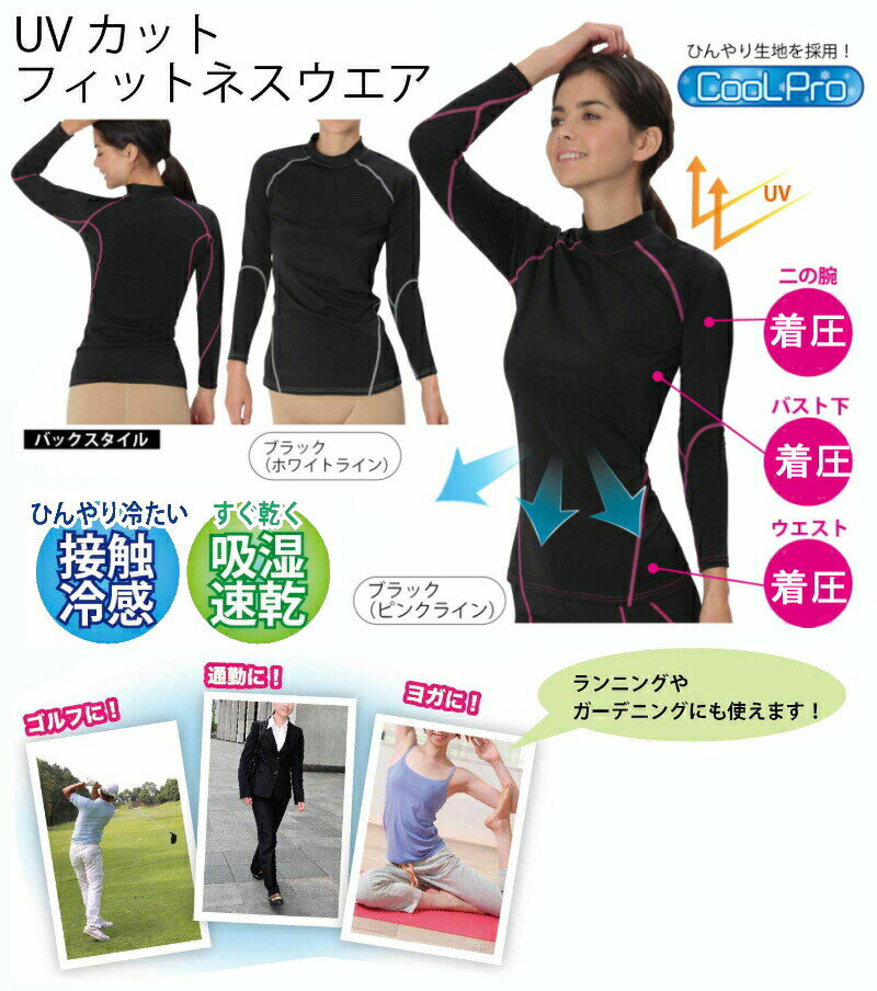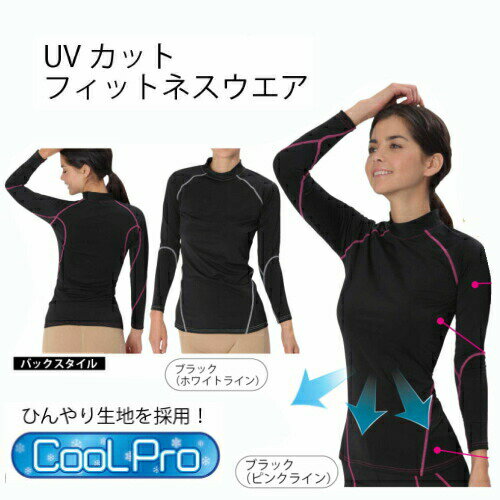 ※ゆうパケット送料無料※ 『UVカット フィットネスウエア CoolPro 【男女兼用】 ブラック ピンクライン/白ライン S-M/L-LL/3L-4L』