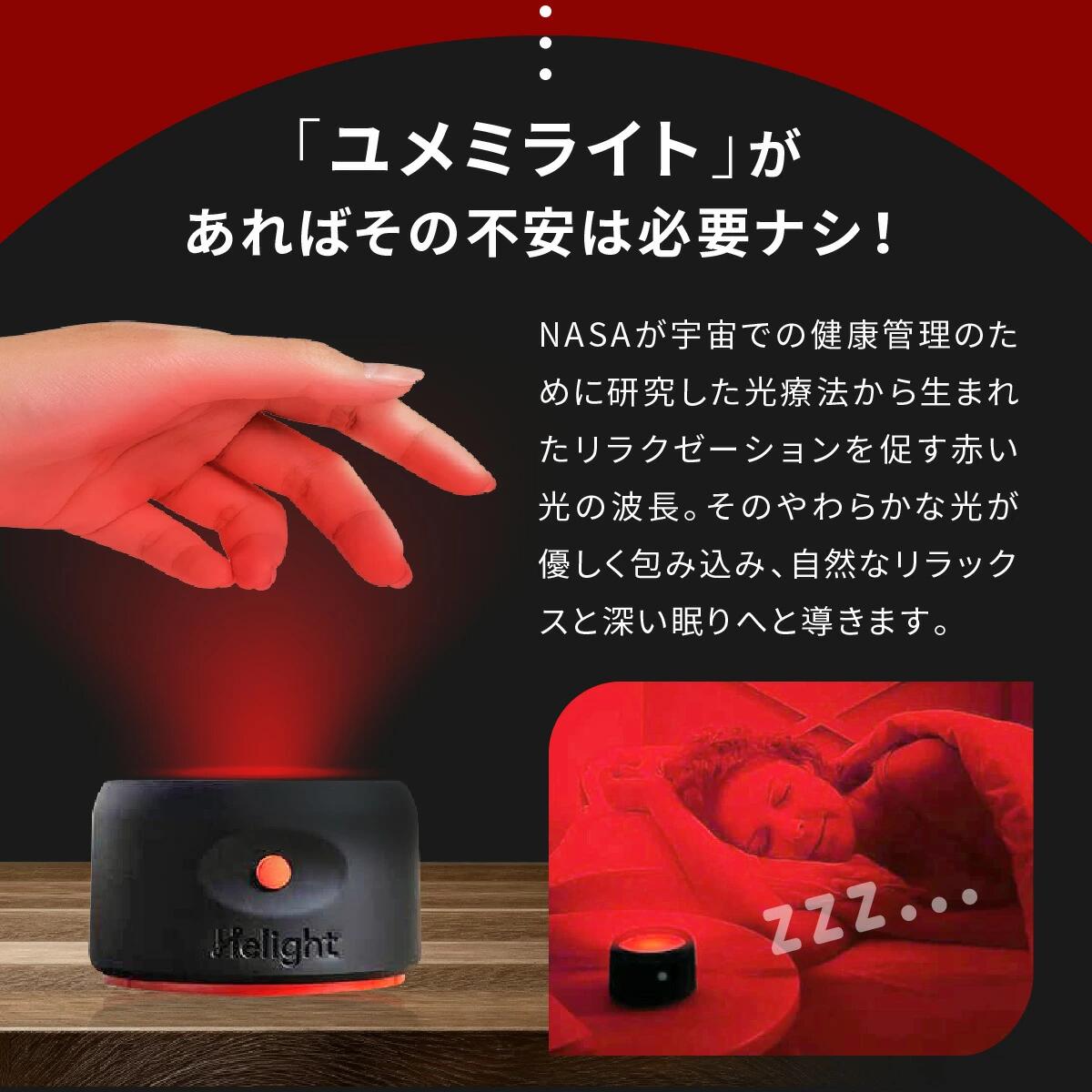 ナイトライト 快眠グッズ ユメミライト 赤い光 ベッドサイド ライト スリープライト 赤色光 充電式 快眠 睡眠 導入 安眠 眠り リラックス ストレス Helight 630 波長 ドーミン トリプトファン 休息 プレゼント ギフト 不眠症 改善 ランプ