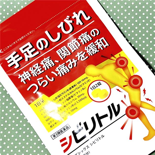 ※こちらの商品は、メール便(ネコポス)対応品です。4個以上の購入や他の商品と同梱の場合は、宅配便での配送となります。 ▶メール便に関して、詳しくはこちら ★出荷日数目安 こちらの商品は、通常1営業日で出荷となります。 商品名 【第3類医薬品】 コーズシックス シビリトル 60錠 【NR】【送料無料】 内容量 60錠 使用上の注意 ■相談すること 1.次の人は服用前に医師、薬剤師又は登録販売者に相談してください。 (1)医師の治療を受けている人 (2)薬などによりアレルギー症状を起こしたことがある人 2.服用後、次の症状があらわれた場合は副作用の可能性があるので、直ちに服用を中止し、この製品を持って医師、薬剤師又は登録販売者に相談してください。 [関係部位:症状] 皮膚:発疹・発赤、かゆみ 消化器:吐き気・嘔吐、口内炎、胃部不快感 3.服用後、次の症状があらわれることがあるので、このような症状の持続又は増強が見られた場合には、服用を中止し、この製品を持って医師、薬剤師又は登録販売者に相談してください。 軟便、下痢、便秘 4.1カ月位服用しても症状がよくならない場合は服用を中止し、この製品を持って医師、薬剤師又は登録販売者に相談してください。 5.服用後、生理が予定より早くきたり、経血量がやや多くなったりすることがあります。出血が長く続く場合は、この製品を持って医師、薬剤師又は登録販売者にご相談ください。 効能・効果 次の諸症状の緩和:神経痛、筋肉痛・関節痛(肩・腰・肘・膝痛、肩こり、五十肩など)、手足のしびれ、眼精疲労(慢性的な目の疲れ及びそれに伴う目のかすみ・目の奥の痛み)「ただし、これらの症状について、1カ月ほど使用しても改善が認められない場合は、医師又は薬剤師に相談すること。」 次の場合のビタミンB1B6B12の補給:肉体疲労時、妊娠・授乳期、病中病後の体力低下時 用法・用量 次の量を服用してください。 [年齢:1回量:1日服用回数] 成人(15歳以上):1〜2錠:1回 7歳以上15歳未満:1錠:1回 7歳未満:服用しないでください 用法に関してのご注意 (1)小児に服用させる場合には、保護者の指導監督のもとに服用させてください。 (2)用法・用量を厳守してください。 成分・分量 1日量(2錠)中 成分:分量:内訳 フルスルチアミン塩酸塩:109.16mg:(フルスルチアミン100mg) ピリドキシン塩酸塩:100mg: シアノコバラミン:1500μg: トコフェロールコハク酸エステルカルシウム:103.58mg:(トコフェロールコハク酸エステル100mg) パントテン酸カルシウム:30mg: ガンマ-オリザノール:10mg: 添加物 セルロース、ヒドロキシプロピルセルロース、無水ケイ酸、乳糖水和物、バレイショデンプン、乳酸Ca水和物、ステアリン酸Mg、酸化チタン、タルク、ヒプロメロース、マクロゴール、リボフラビンリン酸エステルNaを含有する。 薬効分類 ビタミンB1B6B12主薬製剤 剤形 錠剤 保管・取り扱いの注意 (1)直射日光の当たらない湿気の少ない涼しい所にチャックを閉じて保管してください。 (2)小児の手の届かない所に保管してください。 (3)他の容器に入れ替えないでください。(誤用の原因になったり、品質が変わることがあります。) (4)服用の都度チャックをしっかり閉じてください。 (5)使用期限を過ぎたものは服用しないでください。 (6)袋の中に乾燥剤が入っています。服用しないでください。 お問合せ先 発売元:株式会社NR 製品に関する問い合わせ先:NR SHOP ※配送などに関するお問い合わせは当店まで。 使用期限 使用期限まで90日以上ある医薬品をお届けします メーカー名 NR ブランド コーズシックス 製造国 日本 ★医薬品の販売について★ 広告文責:株式会社健人 電話番号 048-252-3939 区分:医薬品 サブカテゴリー: 医薬品分類 > 第3類医薬品 関連ワード: 手足のしびれ/神経痛/関節痛/筋肉痛/眼精疲労/ビタミンB/シビレトル こちらの商品もおすすめ コーズシックス ホワイトプレミアム 90錠 コーズシックス セレブホワイト 90錠 コーズシックス ザ・リンクフィル 135錠 添付文書 コーズシックス シビリトル 60錠 【NR】 ページトップへ【第3類医薬品】 コーズシックス シビリトル 60錠 【NR】 「コーズシックス シビリトル 60錠」は、一日一回飲むだけで、手足のしびれ、神経痛、関節痛の痛みを緩和。有効成分のピリドキシン、シアノコバラミンが末端神経の機能を修復や働きを活性化し、しびれや痛みを解消します。有効成分フルスルチアミン、パントテン酸カルシウムがエネルギー代謝を正常化し神経や筋肉の機能を維持しこわばりを解消します。また、神経や血管を圧迫しないように働きます。しびれ以外にも関節痛、神経痛、筋肉痛、眼精疲労などの症状を緩和することができます。 【ご注意】 こちらの商品は第3類医薬品です。必ず、使用上の注意(してはいけないこと・相談すること)をご確認の上お買い求めください。