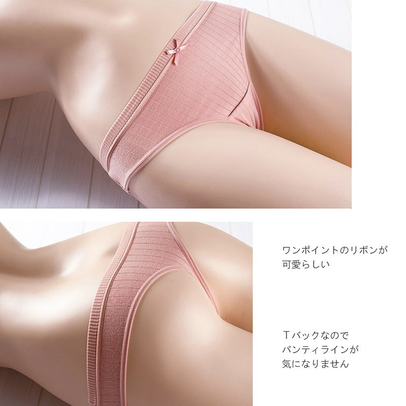 Tバック ショーツ セクシー リボン 綿 コットン ゴム ヒップ お尻 パンティ パンツ パンティーライン 浅い 肌 ソフト M L XL サイズ 可愛い りぼん ワンポイント シンプル タンガ ローライズ