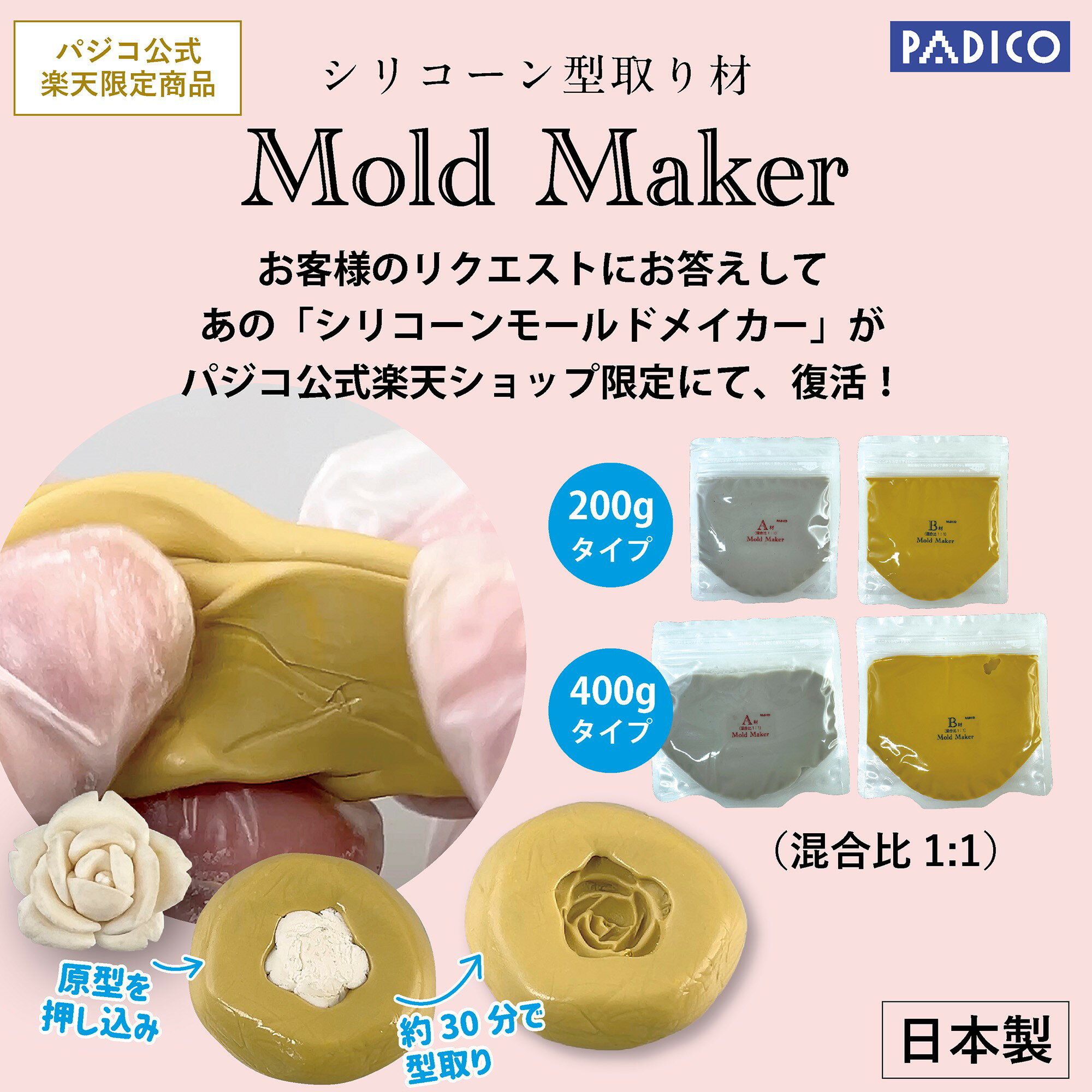 パジコ公式限定 新しくなった シリコーン モールドメイカー 200g 400g 各サイズ 模り フィギュア ミニチュア 模型 ホビー 手作り ハンドメイド モールドメーカー 型 制作 手作り モールド