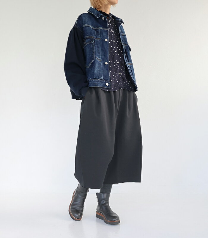 【四回目】予約|MidiUmi ×ヒールアンドトゥ別注 八分丈ポンチガウチョパンツ サルエルシルエット オールシーズン ポンチ素材 ブラック 6153 ミディウミ 【送料無料】