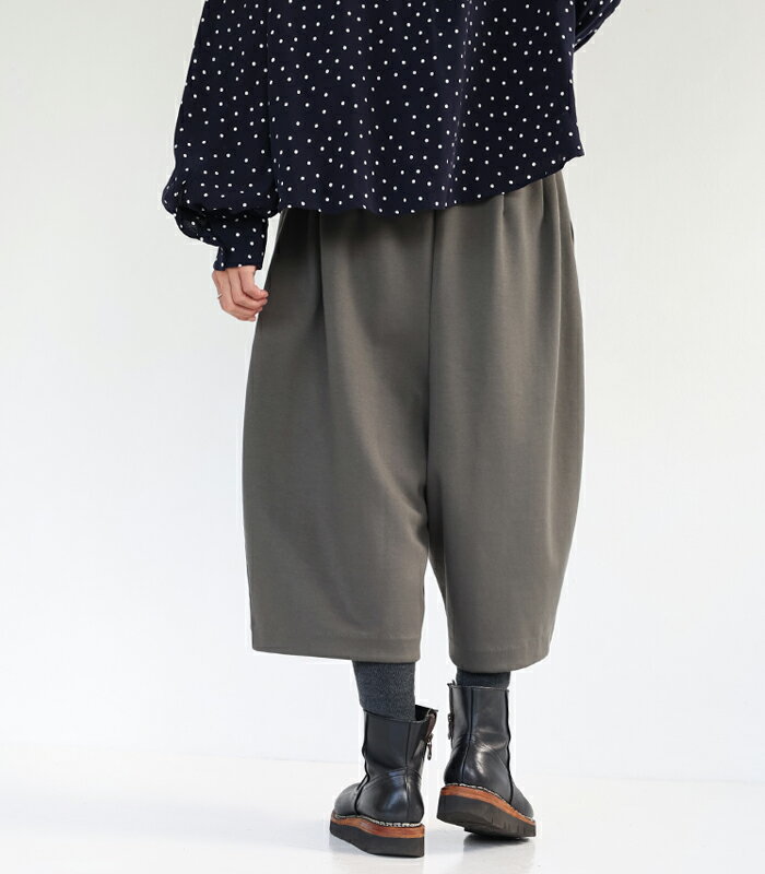 ■ ご予約前に気になる事がある時はご遠慮なく声をかけて下さい ■ 営業日17時までのお問合せは即日返信いたします ■ それ以降のメールは、翌営業日に確認後返信いたします ■ 営業時間 《9-17時》 ■ 定休日《火水&土日祝》 ////////////////////////////MidiUmi[ミディウミ]Simple / Casual着る人の内面が出るシンプルさ着る人が何時も生き生きするカジュアルさ気取らない大人の普段着それがテーマですMidiUmi(ミディウミ)はフランス語で南方を意味する "Midi" 日本語の "海" からなる造語です -------------------------------- No:6153 color:チャコール ブラック material:ポリエステル 綿 Made in Japan 旅行にも、出張にも、日常にもぴったり新感覚スベスベポンチパンツ 別注仕様|ふわっと弾力、軽やか。しなやかに揺れるガウチョサルエル ●ヒールアンドトゥオリジナルデザイン ハーフパンツのサンプルから、長め八分丈にしたオリジナルパターン。自信がない脚を隠しつつ、ショートブーツも似合う丈にしています ●股上深め、サルエルライクのシルエット 腰回りやヒップラインを自然にカバーしつつ、股下のたっぷりとした生地が動きやすさとモード感を演出します。ガウチョ丈との組み合わせで、ボリュームがありながらもバランスよくまとまり、ブーツやスニーカーなど足元で雰囲気を変える楽しみも ●旅行や出張にも向く質感 復元力に優れているためシワになりにくいのが特徴で、持ち運びや着用後のお手入れも簡単。長時間座っても膝の出にくさや型崩れしにくさを実感できます 二層構造の間に空気を含むことで美しいシルエットを一日中キープ ポリエステルコットンのダンボール素材を使用しています。ダンボール素材特有の弾力がありながら、コットンのナチュラルな風合いも併せ持つことで、このハリ感としなやかさが生まれています二層構造の間に空気を含むことで弾力とハリ感を持ち、復元力に優れていることで、座りジワを気にすることなく、美しいシルエットを一日中キープし、快適に過ごせます。旅行や長時間の移動にも最適な、手放せない一枚 クールすぎないほんのりカーキー寄りのチャコール このポンチ素材のチャコールは、単なるグレーではありません。ダークカーキーのような深みが混ざるクリーンで穏やかな表情。ポンチ特有のしなやかな肉厚感と微光沢がやわらかな陰影を作り、ニュアンスのある表情を引き出します 光の当たり方によって表情を変え、シンプルな装いもさりげなく格上げしてくれます 白やグレーのシャツを合わせればクリーンで軽やかな印象に。ベージュ系と合わせれば、やさしく上品なトーンオントーンコーデが完成、ゴールドやシルバーのアクセサリーを添えれば、チャコールの持つ上品な艶感が引き立ち、カジュアルでありながら、よりリュクスな雰囲気に仕上がります シックな万能色|ブラック 特にこの素材の黒は艶がしっかり感じられるので、モードな雰囲気を作りやすく、コーディネート全体を引き締めますカラーソックスや柄物のトップスと合わせれば、洗練された個性が際立ち、ブーツやレザーシューズを合わせるとモード感が強まり、白やベージュのトップスでコントラストをつけると洗練された雰囲気に仕上がります コクーンが織りなす、モダンな美しさ ほどよくボリュームのあるウエストタックと、裾へ向かって丸みを帯びた独特のラインが印象的な、少し丸みのある独特のシルエットが特徴。絶妙な丈感がリラックス感のあるはき心地を叶えます股上が深めなので腰回りを包み込み、リラックスしながらも脚をすっきりと見せてくれるバランス。歩くたびに生まれるしなやかなドレープが、大人の余裕と遊び心を演出する、まさに「日常のアートピース」 伸縮最高!透けないポンチ素材 伸縮性や弾力性から便利に使える素材の光沢感で、上品さを感じる素材なので、お仕事はもちろん、体を動かす場面や活動的なアウトドア、モードな装いにも重宝する、おうち洗濯で、速乾、フル回転できる重宝な素材を採用し、日本製でこのコスパの高さはメーカーの努力の賜物です ■サイズ感について ※ヒールアンドトゥ別注8分丈(総丈約76cm) ※股上が深いサルエル設定 ※ヒップ・ワタリにゆとりが有 ※総ゴムでウエスト穿きも、腰穿きも ※体型に関わらず着用して頂けるFREEサイズ ※ご注文前にサイズ表は必ずご確認ください ●A 身長153cm 普通体型 →ウエスト穿き7分丈位で、腰穿き8分丈くらい ●B 身長158cm 普通体型 →腰穿き8分丈位。股上深めなので丈の上下が自然にできます ●C 身長163cm やや華奢体型 →腰穿き7分丈。もう少し下げれます。コクーンで脚細見え ● size Aウエスト(ぐるり/ゴム) →約72cm~約123cm Bヒップ 約61cm C股上 約50cm D股下 約29.5cm Eワタリ 約43.5cm F総丈 約75cm G裾幅 約33.5cm ● メーカーサイズ表記 →FREE(普通~ややゆったり) ● material ポリエステル53% 綿47% ●重量 約350g ● Made in Japan ※サイズ・お洗濯・色について ※サイズは平置きで計測しています(ウエスト以外) 