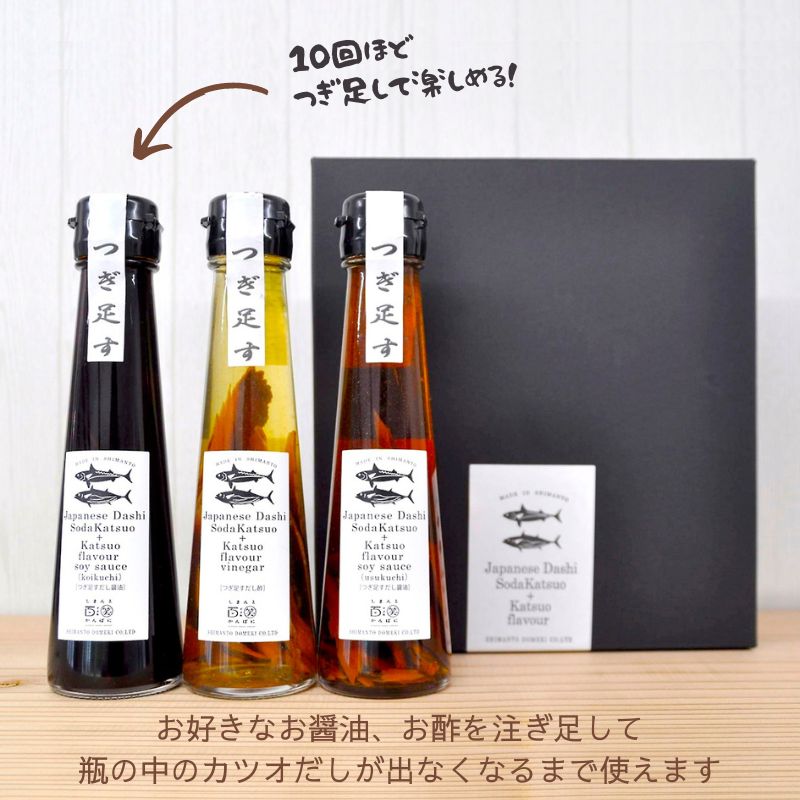 高知の鰹だし つぎ足すだし醤油・だし酢ギフト 3本セット(濃口・淡口・酢) 高知県四万十市から直送 しまんと百笑かんぱに 宗田鰹 土佐清水 かつお節 贈り物 熨斗対応
