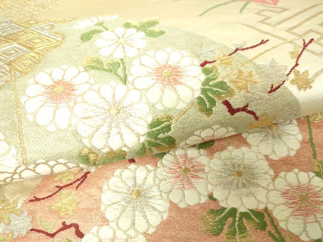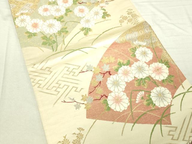 平和屋着物■六通柄袋帯 唐織 地紙草花文 金銀糸 正絹 逸品 DAAM0180sf