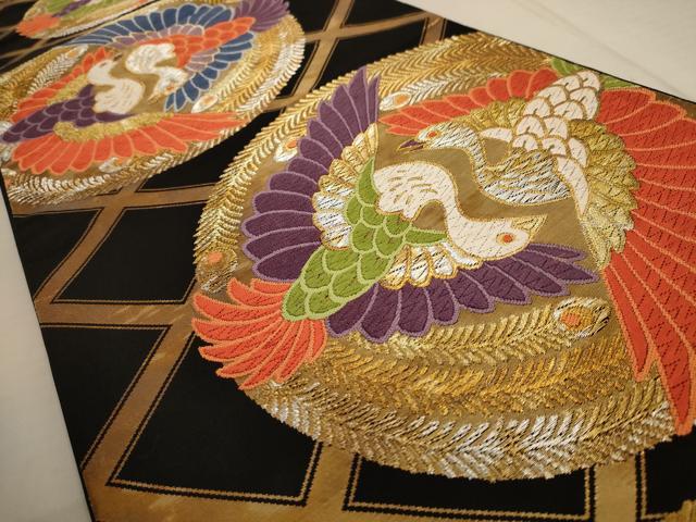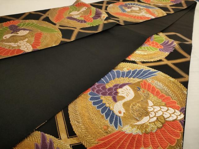 平和屋着物◎六通柄袋帯 唐織 向かい鳳凰文 黒地 金銀糸 正絹 逸品 AAAU8883dt