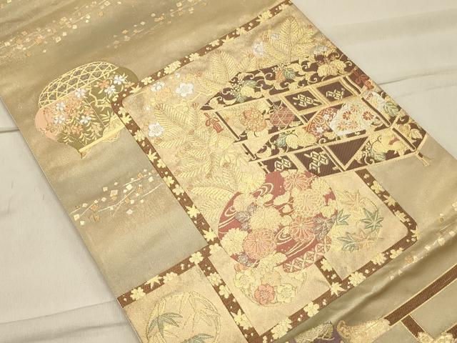 平和屋着物◎太鼓柄袋帯 吉祥陶器花文 金銀糸 引箔 正絹 逸品 CAAS4657ft