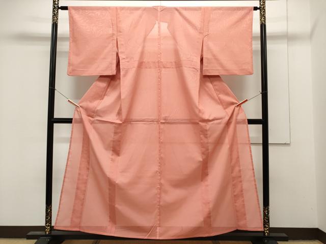 平和屋着物*夏物 色無地 流水紋絽 曙色 洗える着物 CAAR9926ev