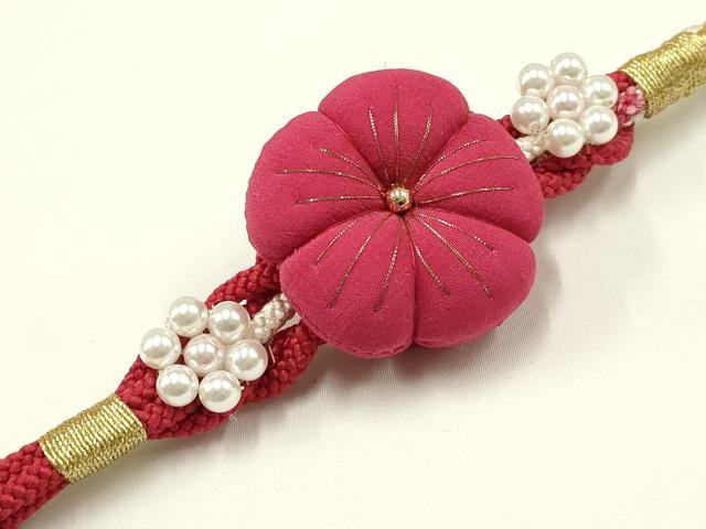 平和屋着物●和装小物 振袖用帯締め ちりめん細工 パール 金糸 逸品 未使用 AAAW4491ay