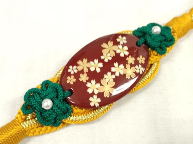 平和屋着物●和装小物 振袖用帯締め 飾り付き パール 丸組 金糸 逸品 未使用 DAAS6423zzz