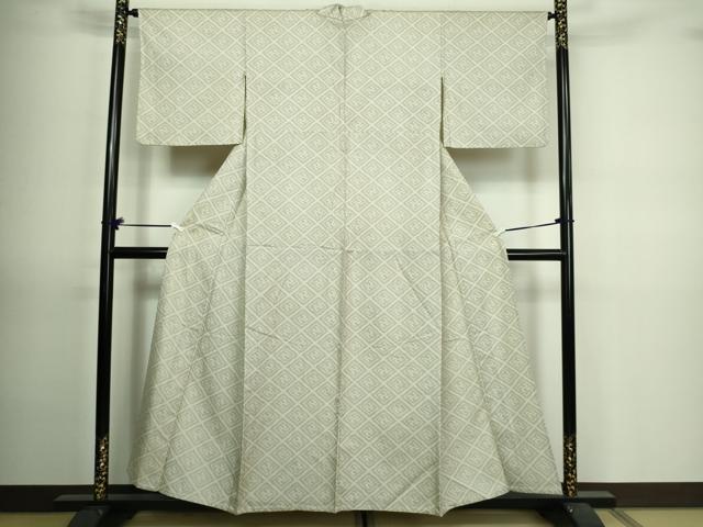 平和屋着物▽上質な紬 単衣 菱文 正絹 逸品 DAAV9724sf