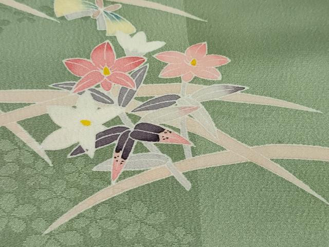 ■■■ 商品詳細 ■■■ 【正絹】 状態は特に目立ったシミ汚れなどもなく大変良い状態です。 大変上質な逸品になります。 お安く出品致しますので、是非この機会にいかがでしょうか? ■■■ 注意事項 ■■■ ■モニター発色の具合により色合いが異なる場合がございます。 ■寸法は多少の誤差が生じる場合がございますのでご了承ください。 ■縫込みの長さが左右非対称の場合は短い部分を記載しております。 左右非対称であってもご返品・お値引き等の保証は出来かねますので、ご了承の上ご購入をお願い致します。 ■シミ等のチェックには注意を払っておりますが、見落としがある場合もございますし、個人の見解も様々ですので神経質な方のご購入はお控えください。 ■箪笥に入っておりました着物や帯なので畳みシワや匂いがあるものもございます。 ■お休みは基本的に土日祝となりますが、その他臨時でお休みする場合がございますのでご了承ください。 ■商品の発送は平日のみの発送となります。 ■夜間と土曜、日曜日はお問い合わせの回答が遅れる場合がございます。 ■当店では、お直し、紋入れ、お手入れ等は承っておりません。 ■生地の状態(ヤケ、経年劣化等)によってはサイズ直しが出来ない場合がございます。 その点もどうかご了承のうえ、ご購入をお願いいたします。 ■弊社で取り扱う商品は一点ものにつき、時期や在庫状況に応じて金額が変更となる場合がございます。 ■検針は行っておりません。予めご了承いただきますようお願いいたします。 ■【洗える着物】と記載のある商品におきましては、商品お届け後に洗濯を行ってしまってからのご返品にはご対応しかねます。 念の為、専門店でのお手入れをお願いいたします。 ■着物のサイズ目安は下記を参考ください↓ <女性着物> お端折り次第で+5? −10?が着用可能サイズ 例)身丈170?の場合、身長160?〜175? <男性着物> 身丈+約25?〜27?程が適応身長 例)身丈155?の場合、身長180〜182?