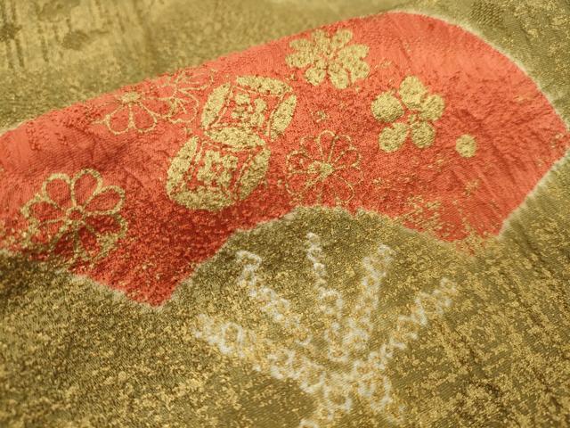 平和屋着物●和装小物 帯締め・帯揚げセット 絞り 扇面草花文 金彩 逸品 未使用 CAAZ6093ju