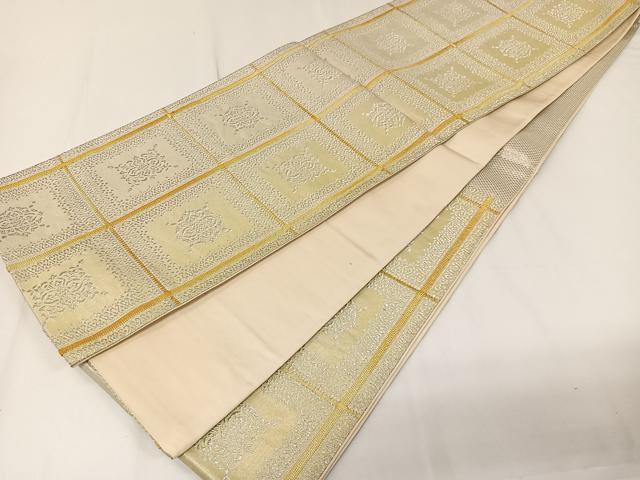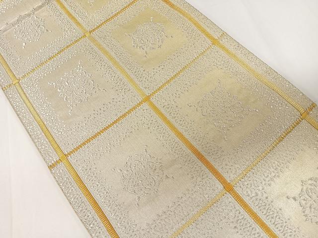 平和屋着物◎六通柄袋帯 格子花文 銀糸 正絹 逸品 CAAY8459ua