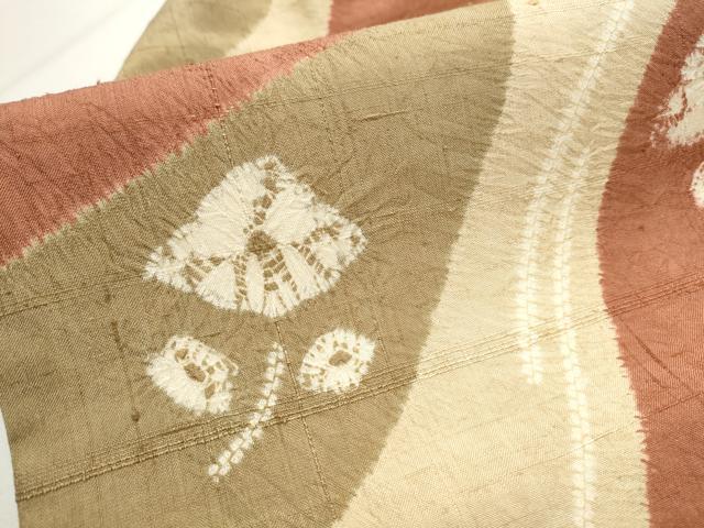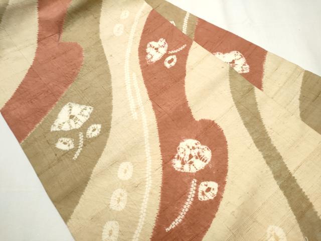 平和屋着物●九寸名古屋帯 生紬 絞り 枝花文 正絹 逸品 CABA0908hy