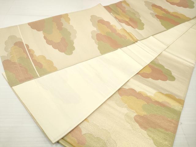 平和屋着物◎六通柄袋帯 重ね雲文 金糸 正絹 逸品 DABA3150qa