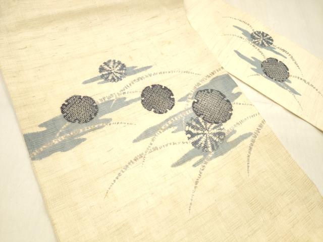 平和屋着物*夏物 九寸名古屋帯 鹿の子雪輪芝文 麻 逸品 DABA0857cm