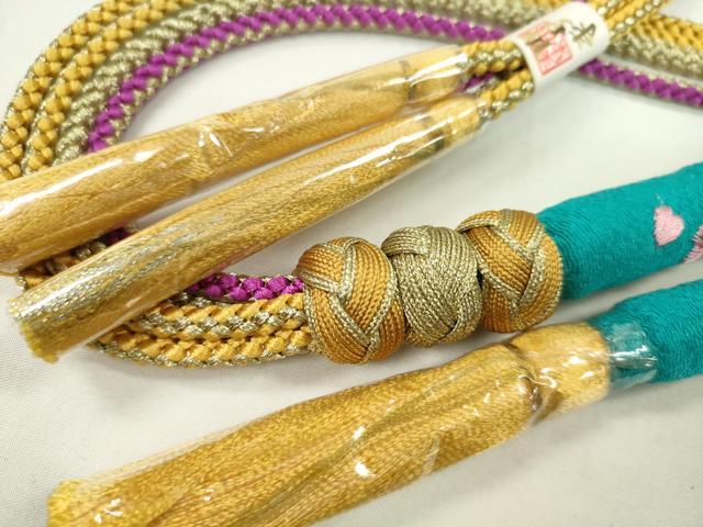 平和屋着物●和装小物 振袖用帯締め 丸ぐけ 刺繍 牡丹 小田巻き 金糸 未使用 CABC0967ju