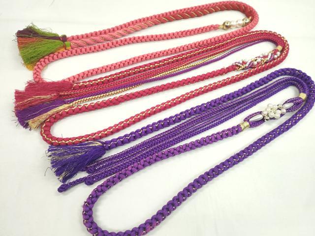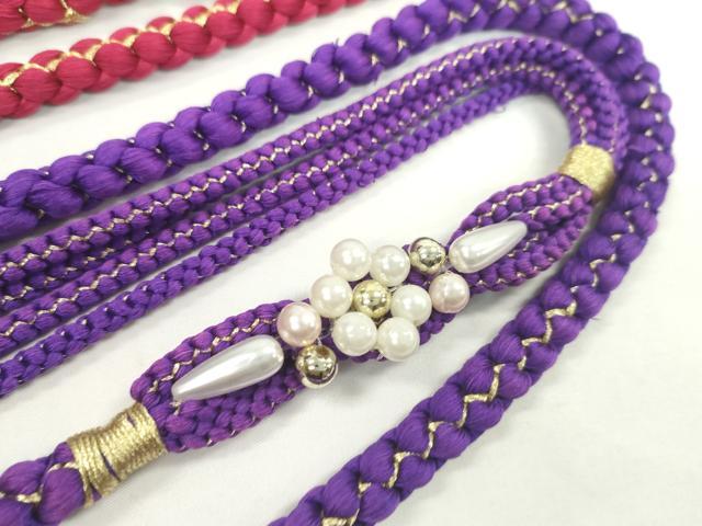 平和屋着物▼和装小物 帯締め3本セット 振袖用 飾り付き パール 花 紫 赤 真朱色 金糸 逸品 CABC0801ju