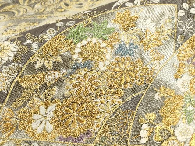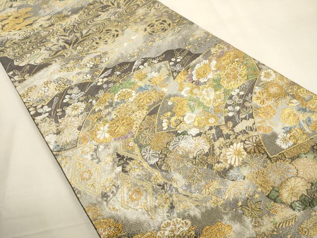 平和屋着物▼六通柄袋帯 唐織 地紙吉祥草花文 金銀糸 引箔 正絹 逸品 CABC3320ak