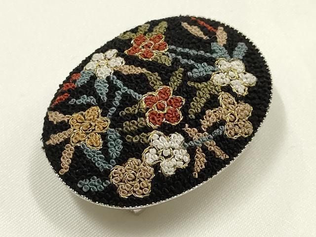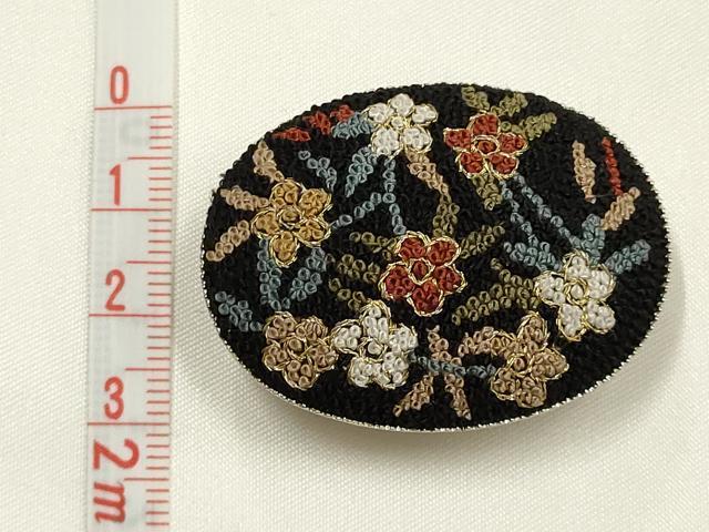 平和屋着物▼和装小物 帯留め 中国三大刺繍 相良刺繍 枝花 金糸 逸品 AABF9967ay