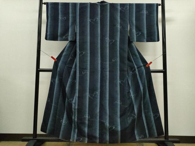 平和屋着物■上質な紬 縞舞蝶文 正絹 逸品 CABD0909ze