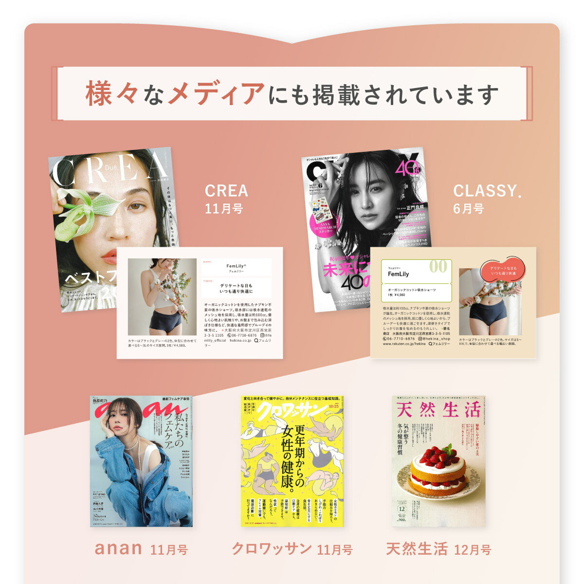 FemLily(フェムリリー)オーガニックコットン吸水ショーツ カラー:ブラック グレー サイズ:S,M,L,XL,3L(XXL) 素 材 本体生地:オーガニックコットン95% ポリウレタン5% パッド部分:ドライ層 ポリエステル100% 吸水層 レーヨン100% 防水層 ポリエステル100%(ポリウレタンラミネート) 機 能:吸水量約100ml ・肌にやさしいオーガニックコットンの吸水ショーツです。 ・深ばきタイプでお腹をしっかり包みます。 ・吸水部の後ろはウエストまで伸びるから就寝時も安心です。 ・初めてお使いの時は少ない日や自宅で試してみることをお勧めします。 ■関連ワード 吸水ショーツ サニタリーショーツ 生理用ショーツ 尿もれパンツ 生理 尿もれ 不正出血 おりもの ナプキン 布ナプキン オーガニックコットン 綿 コットン 黒 灰色 吸水パンツ 給水ショーツ 失禁パンツ 失禁ショーツ 更年期 生理不順オーガニックコットン吸水ショーツ カラー ブラック グレー サイズ S,M,L,XL,3L(XXL) 素 材 本体生地オーガニックコットン95% ポリウレタン5% パッド部分 ドライ層:ポリエステル100% 吸水層:レーヨン100% 防水層:ポリエステル100%(ポリウレタンラミネート) 機 能 吸水量約100ml 商品説明 ・肌にやさしいオーガニックコットンの吸水ショーツです。 ・深ばきタイプでお腹をしっかり包みます。 ・吸水部の後ろはウエストまで伸びるから就寝時も安心です。 ・初めてお使いの時は少ない日や自宅で試してみることをお勧めします。 注意事項 ・モニターの発色の具合によって実際の物と色が異なる場合がございます。 ご了承ください。 ・お問い合わせは直メールではなく「商品についてのお問い合わせ」からご連絡をお願いします。 ■関連ワード 吸水ショーツ サニタリーショーツ 生理用ショーツ 尿もれパンツ 生理 尿もれ 不正出血 おりもの ナプキン 布ナプキン オーガニックコットン 綿 コットン 黒 灰色 吸水パンツ 給水ショーツ 失禁パンツ 失禁ショーツ 更年期 生理不順