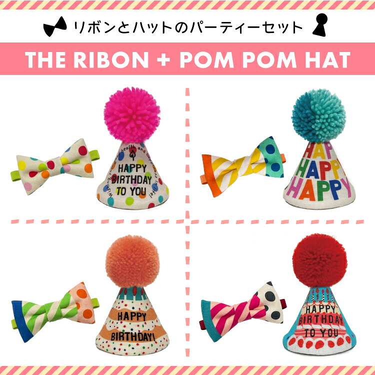 【11月20日5%OFFクーポン】ペット 帽子 リボン | POMPOMHAT + RIBON for BIRTHDAYセット 全4種 | THE BESS 犬 猫 マルチカラー カラフル ハット ポンポン付き 三角帽 蝶ネクタイ おめかし 誕生日 記念日 パーティー お祝い おしゃれ かわいい 仮装 主役 ギフト プレゼント