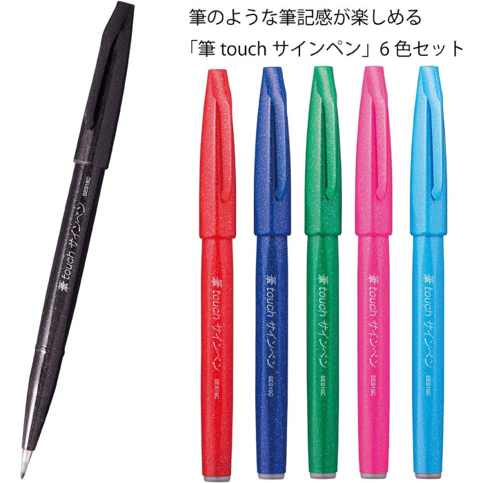 【マツコの知らない世界で紹介されました!】【メール便対応可能】SES15C-6STAぺんてる 筆タッチサインペン 6色セットAスタンダードカラーカラー筆ペン サインペン 手帳 文房具屋さん大賞