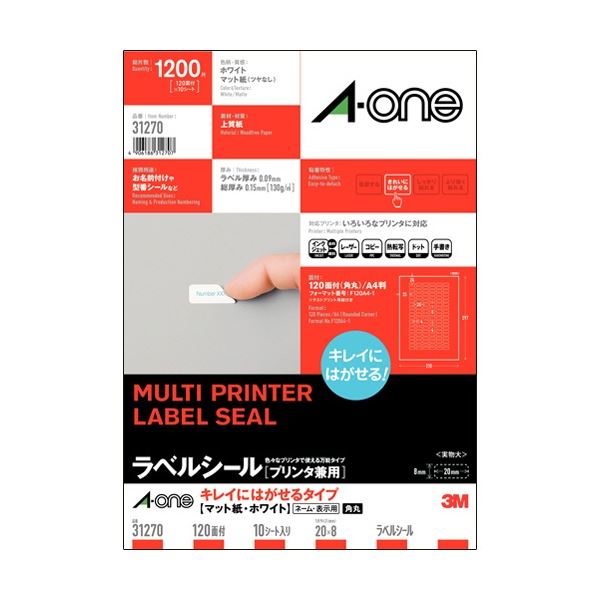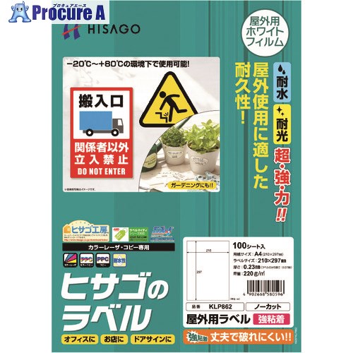 商品名 屋外でも使えるサインラベルシール(レーザープリンタ) 光沢フィルム A4 1面 ノーカット 10シート 品番 31034 仕様 特長:透明やホワイトのフィルムラベルシールです。 ●レーザープリンタでの印字適性に優れたラベルです。 ●耐水性・耐光性に優れた、屋外での使用もできる強粘着タイプのラベルシールです。 ●ツヤのあるホワイト光沢フィルムを使用。ノーカットなので自由に切って使えます。 ●シートサイズ:A4判(210×297mm) ●一片サイズ:210×297mm ●面付:1面 1列×1段 ●厚み:0.14mm ●ラベル・カード厚み:0.07mm ●入数:10シート ●材質:ポリエステルフィルム ●用紙特性:光沢・フィルム ※製造元の都合により、商品仕様は予告なく変更になる場合がございます。 その際は、何卒ご了承ください。 メーカー名 エーワン