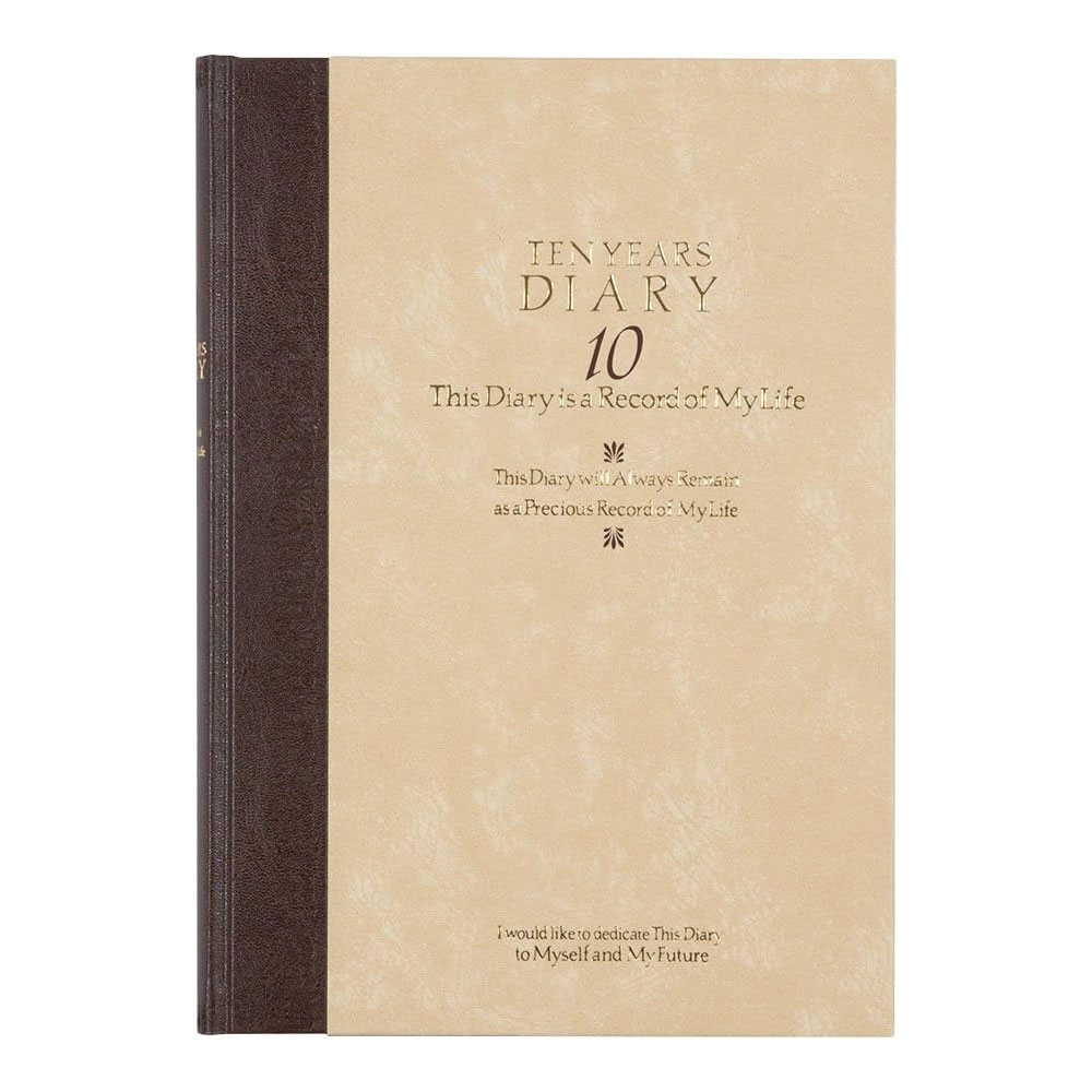 特長:長く愛用できるシンプルフォーマットの10年連用日記。 ●長く愛用できるシンプルフォーマットの10年連用日記 クラシックなタイポグラフィが印象的な洋風のデザイン。 しっかりしたカバーと丈夫な製本で、安心して長くお使いいただけます。 保管に便利なケース付き。 ●箔押し加工が施されたカバーは、さりげなく高級感が光ります。 ●中紙に日付があらかじめ印刷されているタイプです。 ●年・曜日などを書く欄と罫線だけのシンプルなフォーマットで、男女問わず使いやすい。 ●一年の始まりに書く、年頭所感のページ付き。 ●他にも年末所感のページ、住所録、贈答控え、おぼえがきなど充実の付録。 ●日記としてだけでなく、生活に必要な情報をひとまとめにしておけるので便利です。 ●本体サイズ:H262×W188×D25mm ●パッケージサイズ:H269×W194×D32mm ●内容:本文366ページ(横罫) / 罫幅5.5mm / 付録18ページ / しおりひも付 / 表紙=クロス貼り・金箔押し ●メーカー:デザインフィル