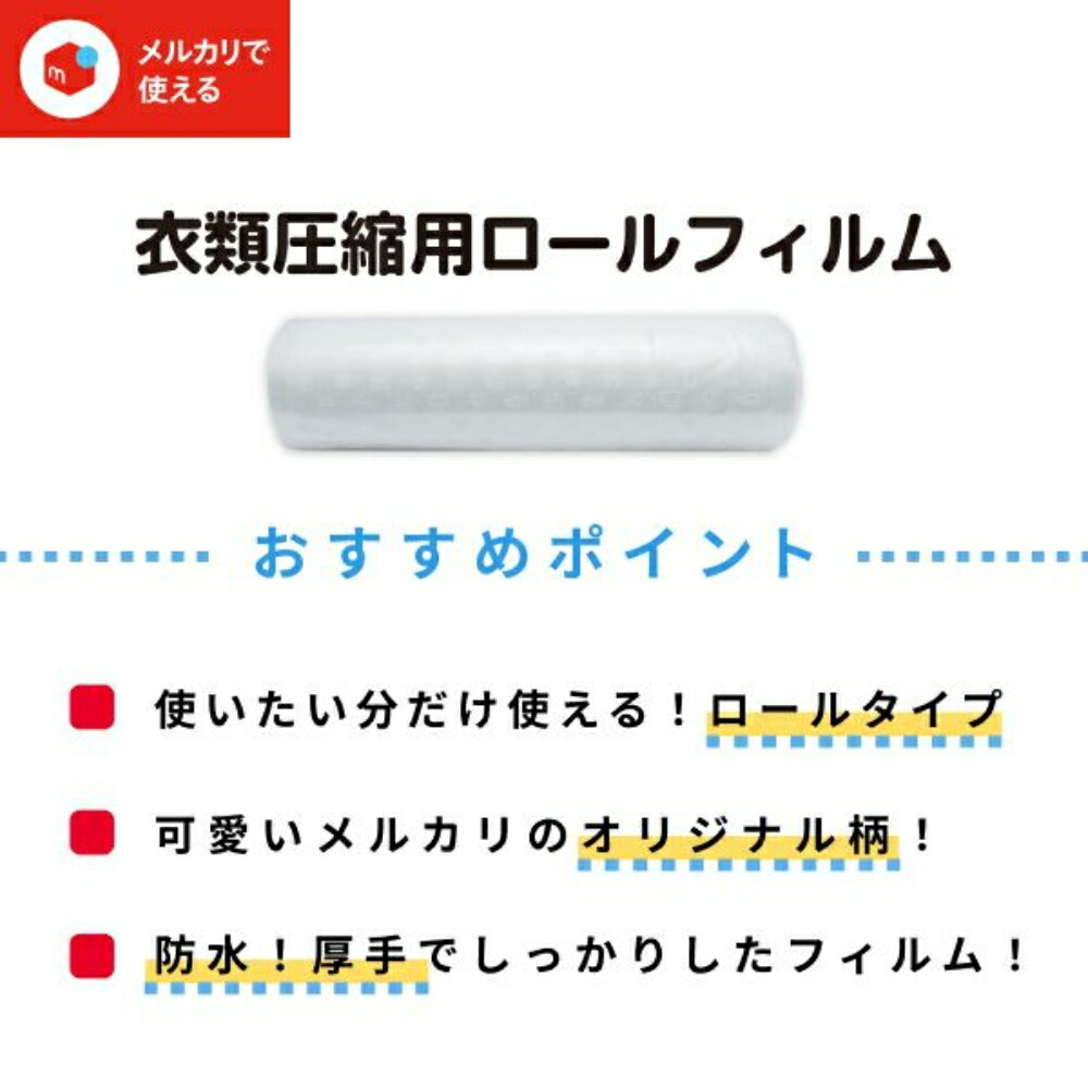 特徴:使いたい分だけ!ロールフィルムだから梱包物に合わせて使える。 保管もスマート。メルカリで使える衣類圧縮シーラー用ロールフィルム ●メルカリ監修!フリマサービスでの送料削減に! ●衣類用圧縮シーラー VS-300WT(別売)で使えるロールフィルムです。 ●衣類だけでなく小物や書籍の保護にも便利 ●メルカリのオリジナルパターン印刷 ●ロールフィルムは内容物に合わせて長さを自由に調節できます ●サイズ:本体:約 W37.5×D7.0×H6.0cm ●質量:約590g