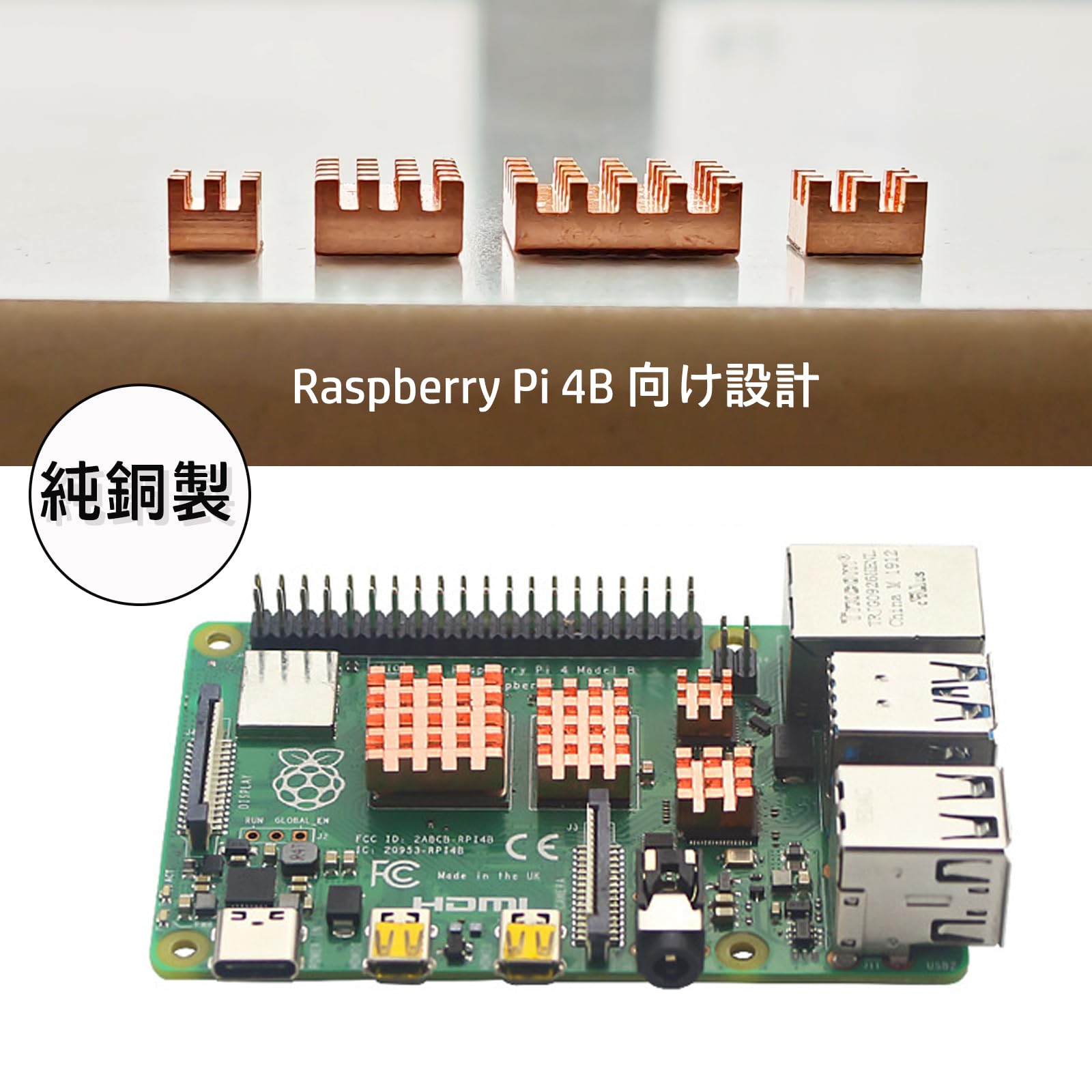 【送料無料】Haojiaho Raspberry Pi用 ヒートシンク 純銅 4個セット Raspberry Pi 4B用 熱伝導性粘着テープ 付き 銅ヒートシンク