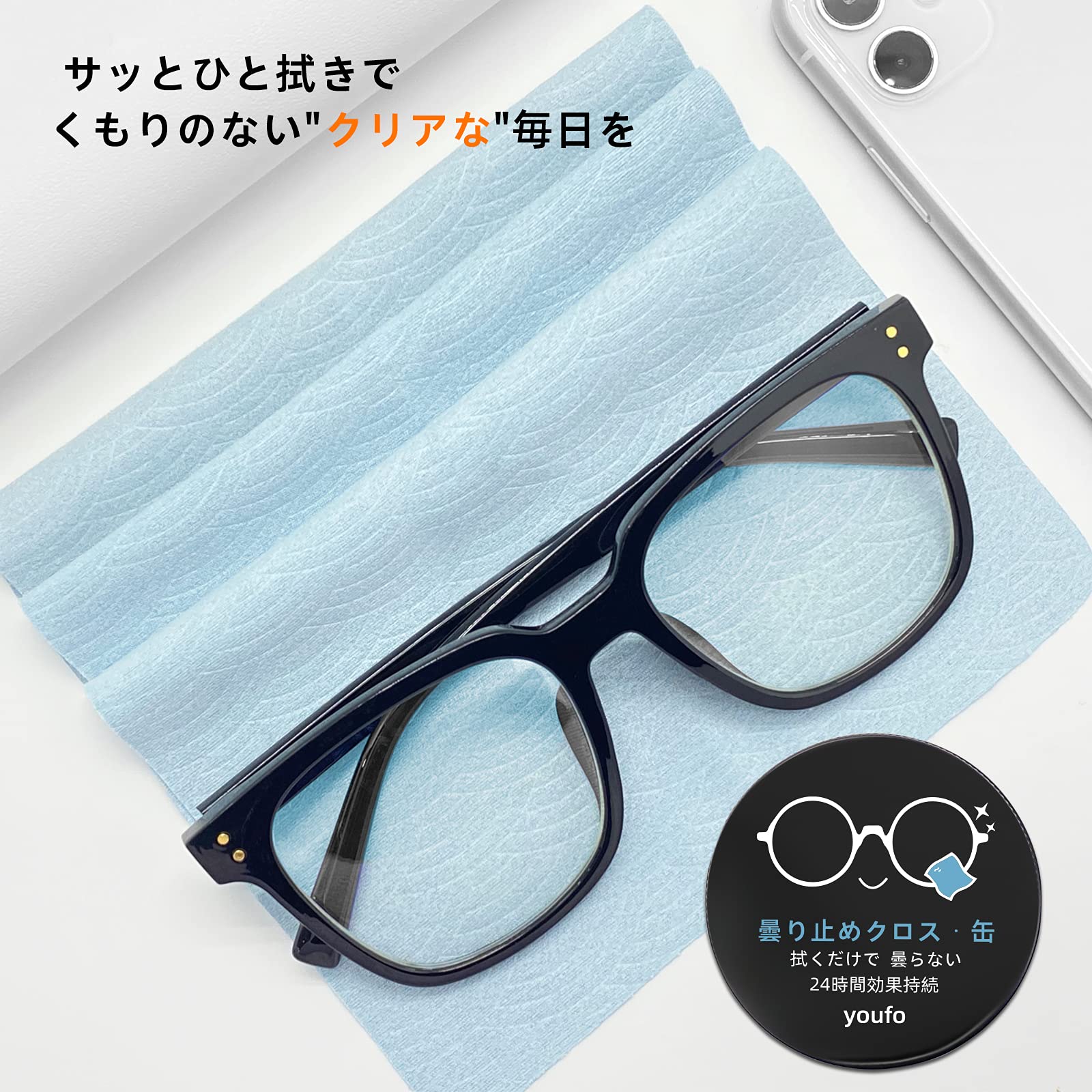 【送料無料】youfo メガネ くもり止めクロス 強力 曇り止め【青海波柄・缶入り・約600回使用】 曇らない メガネのクリーナー 眼鏡拭き マイクロファイバー ブルー 24時間くもらーず ゴーグル/サングラス/カメラレンズ対応
