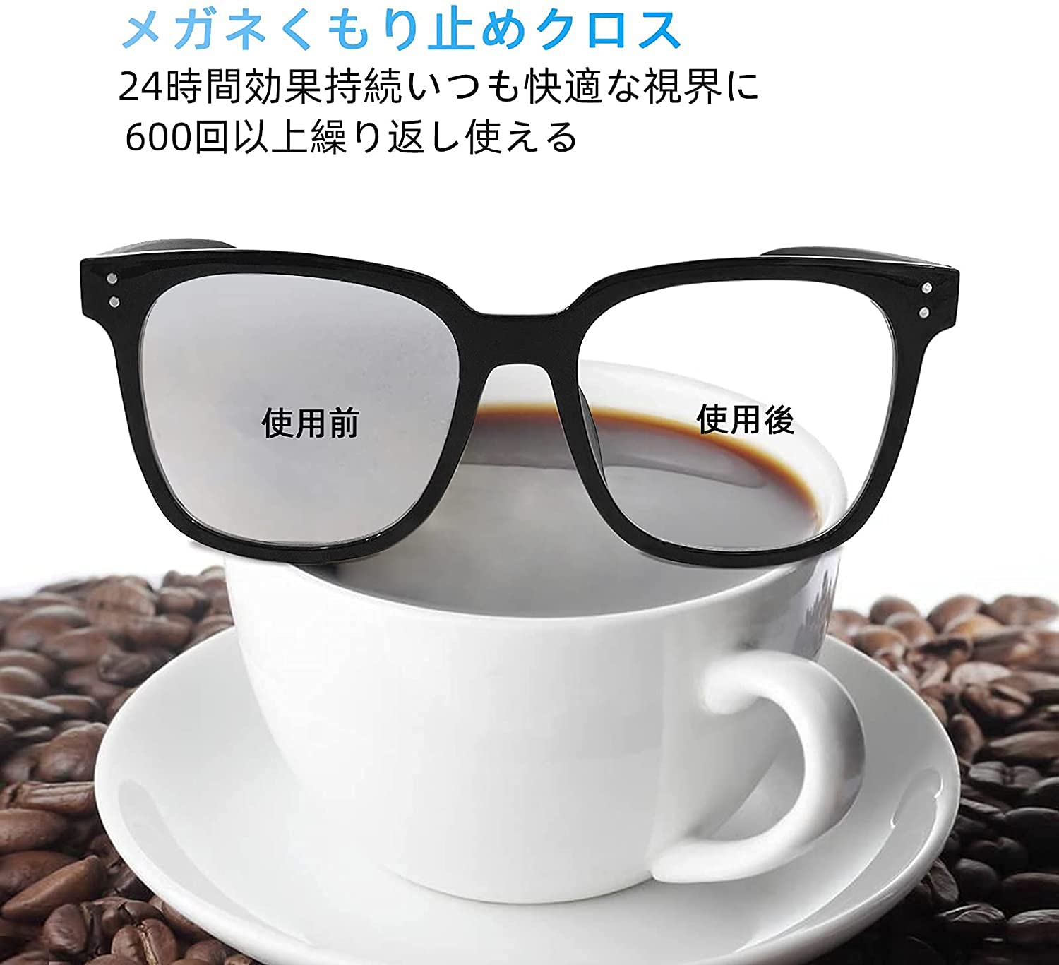 商品情報商品の説明主な仕様 【拭くだけで曇り止め】マイクロファイバークロスに特殊なコーティングを施し、本来のクリーニング機能+くもりにくくなる機能を兼ね備えたクロスです。マスクをしている時、ラーメンを食べる時、電車に乗った時など、曇らずスッキリします!親水性被膜で効果が長持ち。メガネが曇るストレスからあなたを解放します。br【約600回繰り返し使える】約600回以上も繰り返し利用することができて非常に経済的です。 ご注意: ※ご使用後はクロスを密封収納缶に保管してください。br【24時間効果継続】正しい使い方で一回のご使用で24時間視界が遮られることもなくなり、快適に過ごすことができます。※使用環境により効果・持続時間が異なります。レンズの表面にはくもり止め被膜がもうあったり、メガネ拭きが水に濡れたり、メガネクリーナーが密閉に保管してなかったり、以上の状況によっては曇り止め効果が低下になる可能性があります。br【メガネの他にも活躍】専用収納缶がありますので、サッと一拭きでメガネの曇りを解消します。使った後も簡単収納。被膜で汚れもつきにくいので、ホコリ・花粉対策にも!メガネはもちろん、カメラのレンズ、サングラス、ゴーグル、スマホの液晶など、さまざまな場面で役立つ製品です。br【ご使用方法】使用前にメガネ表面を綺麗にします。※汚れは水や別のクロス等で拭き取るのが長持ちの秘訣です。レンズに「はぁ〜」と息を吹きかけ、くもり止めクロスでレンズの両面を隅々まで丁寧に拭きます。途中息を吹きかけ、白くくもる箇所がないか確認しながら吹くと効果的です。全体的にコーテイングできたら完成です。