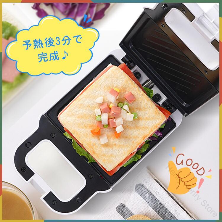 ホットサンドメーカー 3分で簡単調理 食パン1枚対応 ハーフサイズ プレス式 電気式 ワッフルプレート付き 朝食や時短料理に最適 メンチカツやゆで卵も対応 ホーム家電 Mod-life