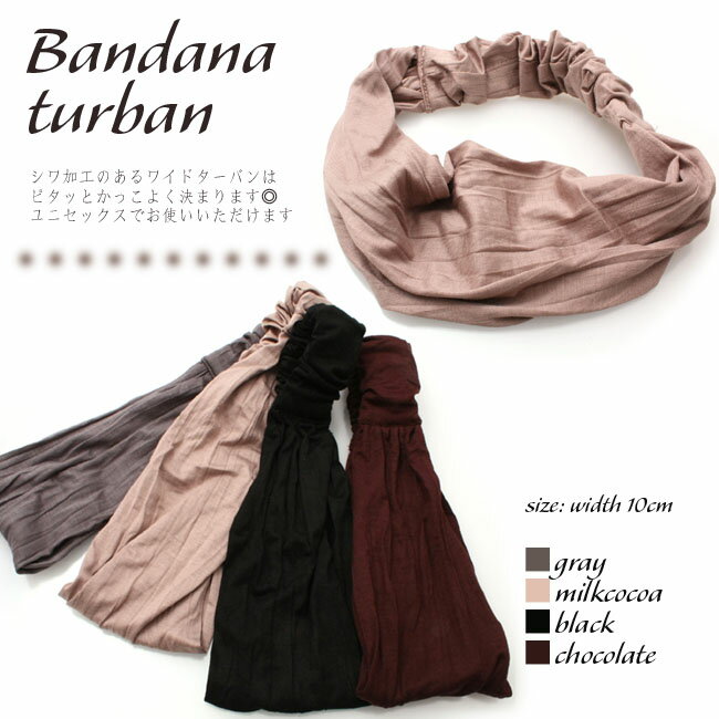 ワイドターバン カチューム シワ加工【A61-】ユニセックス 幅広 ヘアバンド