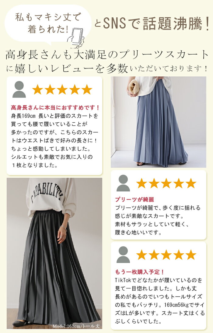 【商品説明】ふんわりと広がるシルエットがフェミニンなプリーツスカートです。広がり過ぎないシルエットと立体感のある太めのプリーツ効果ですっきり体型カバー。トップス次第でカジュアルからキレイめまで幅広いコーディネートを楽しめます。サイズ表(cm) ※スタッフによる平置き、メジャー採寸となります。サイズ総丈ウエストヒップ裾周りレギュラー丈9066-90110〜342トール丈9966-90110〜342※サイズ感につきましては体型により異なりますため、サイズ詳細をご確認ください。スペック素材表地:ポリエステル94% ポリウレタン6%裏地:ポリエステル95% ポリウレタン5%洗濯表示※洗濯マークの説明はこちら原産国 中国品番y826着用詳細裏地あり透け感なし※淡色は下着の色によってはうっすらと透ける場合があります。伸縮性なしポケットなし重さ約622gロングスカート ロング丈スカート ロングプリーツスカート プリーツロングスカート プリーツマキシスカート ボトムス ボトム マキシ マキシスカート ロング丈スカート マキシ丈スカート フレアスカート フレア 太い 太プリーツ 太めプリーツスカート 幅広 幅広プリーツ 幅広プリーツスカート Aラインスカート マキシ丈 ロング丈 トール丈 トール トールサイズ 高身長 170cm 長い 長め ボリュームスカート ボリューム ゴムウエスト ゴムウェスト ウエストゴム ウェストゴム ゴム ウエスト ウェスト ゆったり ゆる ゆったりサイズ ラクチン らくちん 楽ちん 楽 動きやすい こなれ感 落ち感 高級 高級感 上質 上質感 スタイルアップ 縦長効果 縦長 脚長 脚長効果 裏地 内紐付き 内紐 レイヤード 重ね着 重ね レイヤードコーデ 体型カバー 大きいサイズ プラスサイズ ビッグ ビック big ビックシルエット ビッグシルエット ビックサイズ ビッグサイズ オーバーサイズ オーバー 着痩せ 大き目 大きい 大きめ フリーサイズ フリー S M L LL 2L XL 3L XXL LLL ランチ デート お出かけ リゾート 旅行 飛行機 カジュアル ナチュラル 大人カジュアル ベーシック オフィス オフィスカジュアル テレワーク リモートワーク リモート オンライン飲み会 おうち時間 お家時間 着回し 母の日 プレゼント ギフト 贈り物 クリスマス シンプル 大人 大人カジュアル オトナ 女性 綺麗 綺麗目 きれい キレイ キレイめ キレイメ きれいめ 高見え 上質 上品 レディースファッション 20代 30代 40代 50代 おしゃれ お洒落 オシャレ 可愛い かわいい カワイイ カッコいい 格好良い カッコイイ 黒 黒色 ブラック 灰 灰色 グレー ダークグレー ディープグレー ベージュ ベージュ色 ベージュ系 ラテ ラテベージュ シック 春 夏 秋 冬 春夏 秋冬 HUG.U HUGU ハグユー はぐゆーセール実施の際は予告なく価格の変更を行う場合がございます。サイズ/ 総丈/ ウエスト/ ヒップ/ 裾周り/ レギュラー丈/ 90/ 66-90/ 110〜/ 342/ トール丈/ 99/ 66-90/ 110〜/ 342/メーカー希望小売価格はメーカーサイトに基づいて掲載しています→コチラ!※モデル着用商品は在庫切れ・販売終了・リンク切れの場合がございます。