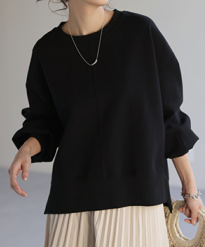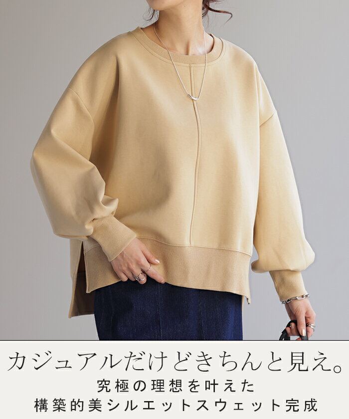 スウェット ジャスト丈 トップス レディース トレーナー 無地 ドルマンスリーブ スエット プルオーバー レイヤード ドロップショルダー ぽわん袖 ドルマン 長袖 厚手 大きいサイズ スリット 別売り セットアップ 可 黒 アイボリー 白 春 冬 HUG.U