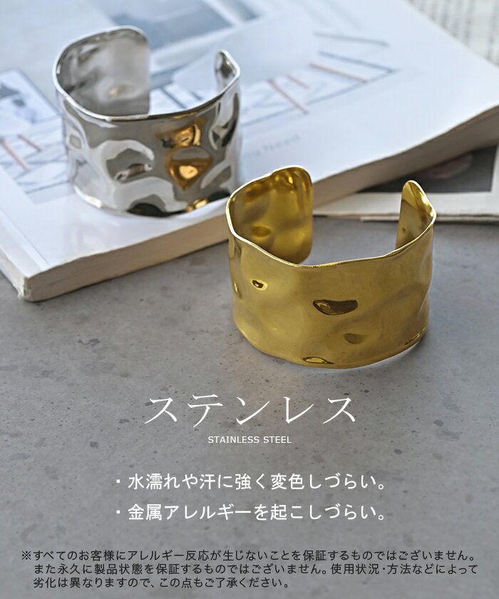 【商品説明】たたき加工を施したメタルワイドのバングルです。シンプルながらも存在感抜群でスタイリングのアクセントに◎。錆びにくく傷に強いステンレスでデイリーに活躍します。サイズ表(cm) ※スタッフによる平置き、メジャー採寸となります。全長幅開き1643※サイズ感につきましては詳細をご確認ください。スペック素材ステンレス原産国 中国品番jp689着用詳細重さ約46g太目 太い フープ 円 輪 モード メタルバングル メタルブレスレット メタリック 個性 変形 大きめバングル 大きめブレスレット シルバーアクセ ゴールドアクセサリー ゴールドアクセ シルバーバングル ゴールドバングル シルバーブレスレット ゴールドブレスレット ラウンド ラウンドバングル ウエーブ オブジェ 変形バングル 変形ブレスレット お洒落 オシャレ 大きめ 大きい 個性的 ステンレス アクセサリー シルバー ゴールド 錆びにくい 金属アレルギー 金アレ シルバーピアス ウェーブ アクセ アレルギー対応 おしゃれ ねじり レディース 大きめ 変形 大人 ステンレスバングル ステンレスアクセ ステンレスブレスレット 金属アレルギー対応 アレルギー 対応 金アレ対応 水濡れ 水濡れ可能 モチーフ ニュアンス カーブ モード 人気 個性 パーティー 女性 金 銀 金色 銀色 エレガント 華やか メタル素材 光沢 光沢感 ゴージャス パーティ 結婚式 二次会 ランチ デート お出かけ フェス リゾート ビーチ 海 旅行 飛行機 レディースファッション ファッションジュエリー ファッションアクセサリー 旬 トレンド 大きいサイズ プラスサイズ ビッグ ビック big ビックサイズ ビッグサイズ 大き目 カジュアル ナチュラル 大人カジュアル ベーシック 仕事 オフィス オフィスカジュアル テレワーク リモートワーク リモート オンライン飲み会 おうち時間 お家時間 母の日 プレゼント ギフト 贈り物 クリスマス シンプル 大人 大人カジュアル オトナ 女性 綺麗 綺麗目 きれい キレイ キレイめ キレイメ きれいめ 高見え 上質 上品 20代 30代 40代 50代 可愛い かわいい カワイイ カッコいい 格好良い カッコイイ 春 夏 秋 冬 春夏 秋冬 HUG.U HUGU ハグユー はぐゆーセール実施の際は予告なく価格の変更を行う場合がございます。全長16cm / 幅4cm / 開き3cmメーカー希望小売価格はメーカーサイトに基づいて掲載しています→コチラ!※モデル着用商品は在庫切れ・販売終了・リンク切れの場合がございます。