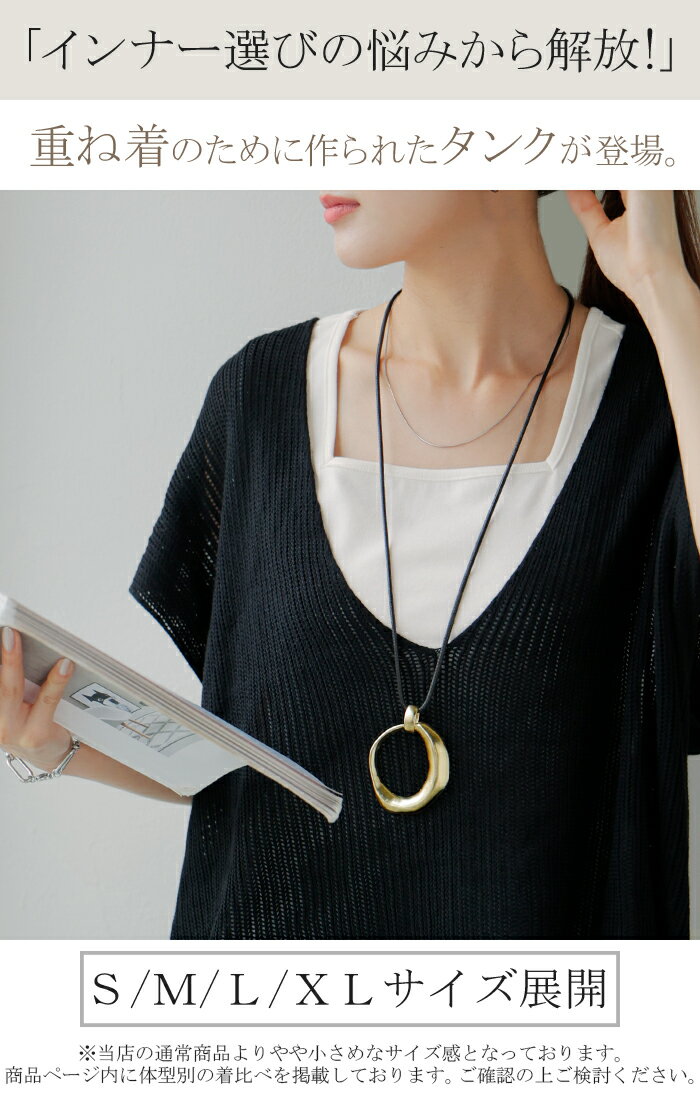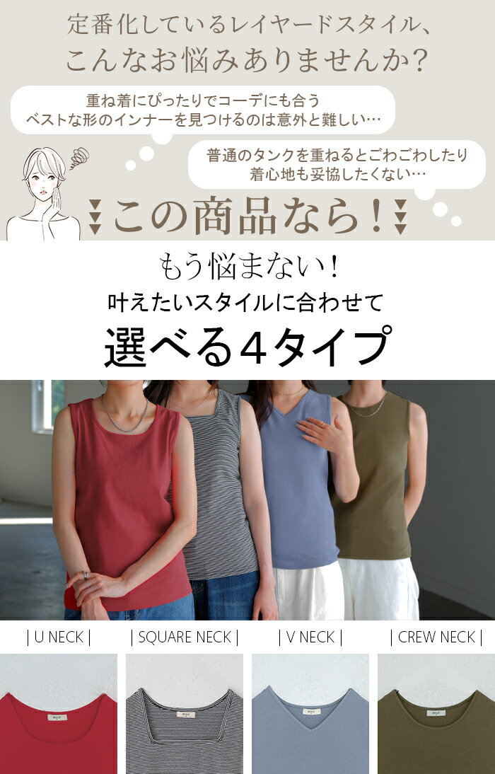 1000円OFFクーポン有「 選べる4タイプ 」 タンクトップ レイヤード インナー トップス タンク レディース 無地 カットソー キャミソール Vネック クルーネック スクエアネック カラバリ ストレッチ ボーダー 体型カバー きれいめ 大人 黒 白 春 夏 HUG.U