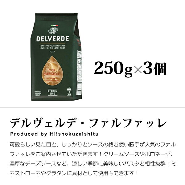 【3個セット】イタリア産 最高級パスタ・デルヴェルデ N.222 ファルファッレ 【250g×3個】【常温/全温度帯可】 ショートパスタ デルヴェルデ ファルファッレ 【CK】
