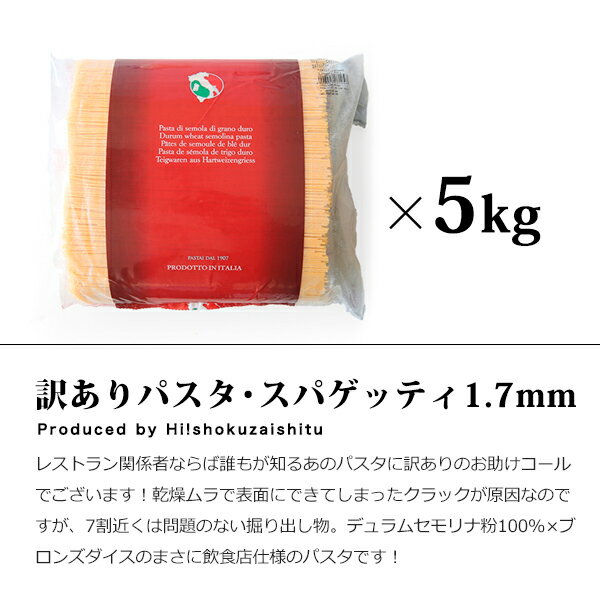 【クラックありの訳あり品!】デュラムセモリナ粉100%使用 ブロンズダイス 業務用5kgサイズ パスタ・スパゲッティ 【5kg / 1.7mm】【常温全温度帯可】 パスタ スパゲッティ 【CK】