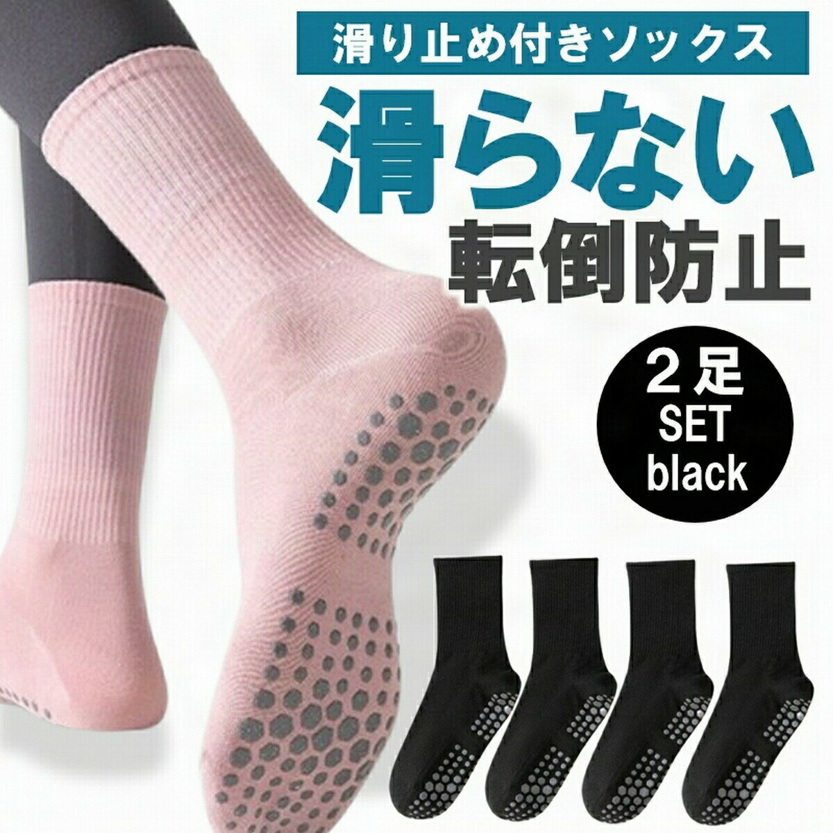 靴下 滑り止め付き 防滑 スポーツ 2足セット 足セット 無地 暖かい ヨガソックス 滑らない靴下 クルーソックス リブ編み ピラティス 滑り止めソックス イボ付 メンズ レディース