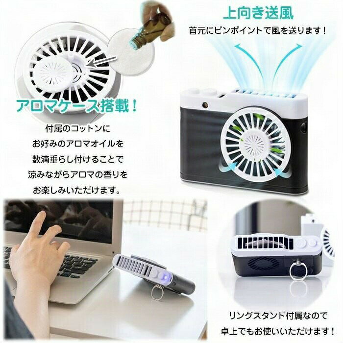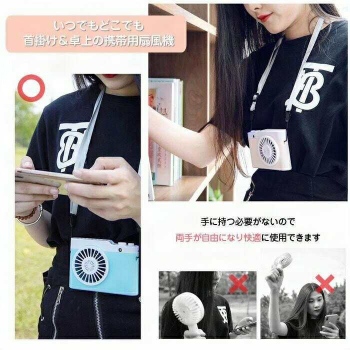 扇風機 首掛け カメラ型 USB充電式 ミニファン 携帯扇風機 扇風機カバー 上向き送風 小型 アロマ 夏用品 アウトドア レジャー ハンズフリー 全4色 おしゃれ