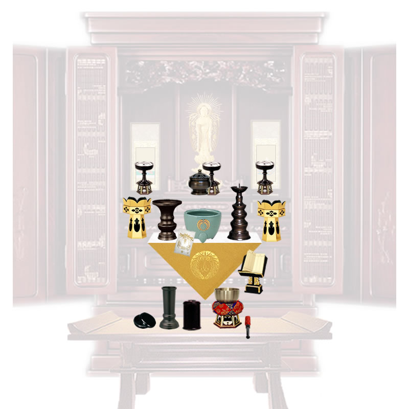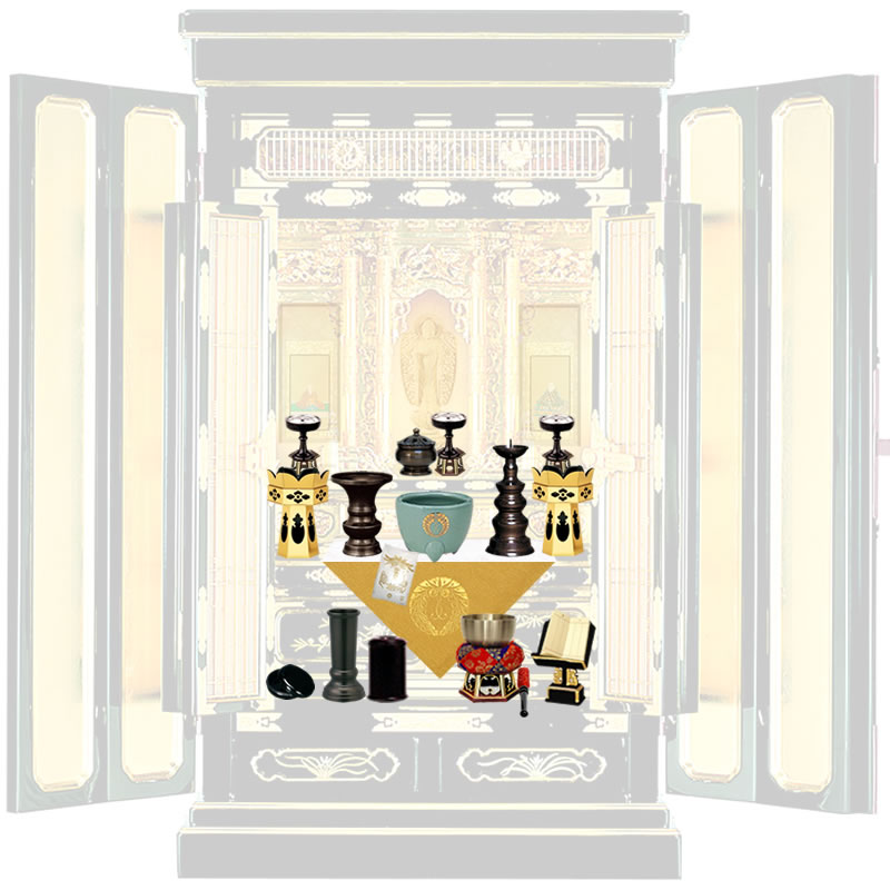 浄土真宗 本願寺派 仏具セット【金仏壇・唐木仏壇 上置用 大サイズ】ひだまり仏壇が独自にセレクトした浄土真宗 本願寺派に必要な仏具のオリジナルセットで金仏壇や唐木仏壇の上置きの大型23号以上に最適な仏具セット