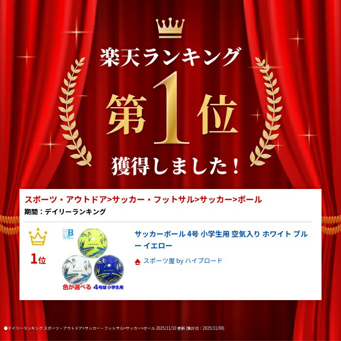 サッカーボール 4号球について 1.サッカーボール4号球 子供向け(小学生向け)の初心者用・レジャー用(遊び用)、練習球(練習向け)として開発されたお手頃なサッカーボールです。 表面は軽めな素材を使用し、空気ありの軽量でお買い得な合皮サッカーボールです。 2.すぐに遊べる空気入り! 当店では空気入りの状態で発送していますので、商品が到着したらすぐに使用できます。 なお、空気圧は気温の変化や時間の経過などにより、変化していきますのでご了承ください (※商品到着時に極端に空気が抜けている場合は初期不良の可能性がありますので当ショップにご連絡ください) (※空気圧の調整には別売りのエアポンプ(空気入れ)をご使用ください) 3.カッコいいデザイン! 鮮やかなかっこいいカラーリング。 この目立つカラフルなカラーリングはサッカーをより楽しくさせます! 3つのカラーからお選びください。 4.こんな特徴があります! 安価なのに表面のパネルとパネルは糸で縫っている手縫いサッカーボールです。 サッカーボール 4号球の詳細 内容 ・4号サッカーボール1個 商品ジャンル スポーツ用品&おもちゃ > サッカー > サッカーボール 対象 小学生用(小学生向け)、ジュニア用(ジュニア向け)、キッズ用(キッズ向け)、入門用(入門者用)、レジャー向け(ビギナー向け)、リフティング用(リフティング向け) 対象者 ・子供(子ども、小学生) 可愛い小学生の息子や娘、親戚の甥っ子(甥っこ)や孫と遊んだり、1人でドリブルやリフティングも楽しめます! ・学生(中学生、高校生、大学生) 学校での体育授業や放課後の部活動(クラブ)・サークルなどの練習用に使う場合、別商品のサッカーボール5号球をお選びください。 ・家族 家の中やお庭で遊んだり、連休中のファミリー旅行やアウトドアの娯楽におすすめです。 ・友達、友人 子供同士で楽しい遊び道具にいかがですか? ・大人 一般向け(大人向け)ではありませんので、5号球サッカーボールをお選びください。 商品仕様 ・サイズ/4号(小学校用) ・材質/PVC(ポリ塩化ビニル) ※このボールは検定球ではありません。 ブランド JOHNSON(ジョンソン) 色 ホワイト、ブルー、イエロー 原産国 中国製 ご注意事項 ※硬い地面、硬い物に擦れた場合や激しく使用した場合など、表面プリントが落ちることがありますのでご了承ください。 ギフト お子さまやお友達への誕生日(バースデー)プレゼントやクリスマスプレゼント、入学祝い(入園祝い)などのお祝い事にぜひいかがですか? 特別配送 翌日お届け対応可能(対象エリアのみ) 14時までのご注文で即日発送(翌日指定ありの場合) ※急ぎで即納希望の場合は、日付指定をご利用ください。 配送料 送料無料(送料込) ※ただし沖縄は送料1410円になります。サッカーボール 4号 小学生用 空気入り ホワイト ブルー イエロー 空気入りですぐに遊べます! お子様へのプレゼントにいかがですか? 家族や友達同士でも楽しめます! ☆☆☆彡 こんな感じの商品です♪ ☆☆☆彡 ○これからサッカーを始めるお子様にプレゼントしてはいかがですか? ○きれいな色・デザインの小学生向けサッカーボールです! ○一人での練習や仲間たちとのゲームで遊んでテクニックを身につけよう! レビューキャンペーンの詳細はこちらへ >