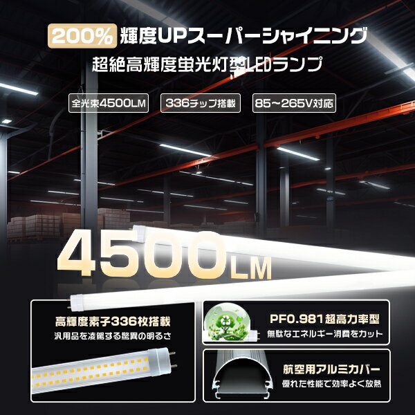 【11/20-11/27限定最大2000円OFFクーポン】led蛍光灯 40W形【10本セット】直管 120cm 336チップ 超絶高輝度 4500LM 40W型 グロー器具用 工事不要 led照明 インバーター/ラピッド式対応可 EMC対応 1198mm 色選択 2年保証 送料無料 HIKARI