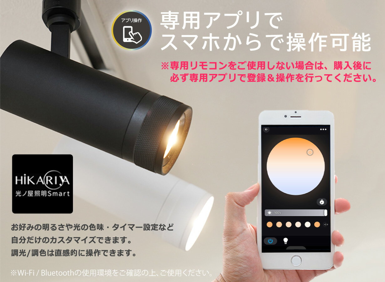 光ノ屋Smart スマートスポットライト LED一体型 Wi-Fi 調光調色 900lm スマートスピーカー対応 ビーム角調節 ダクトレール用 ライティングレール用 レールライト 配光調整 電源一体式 電源内蔵 照明器具 スマホ操作 アプリ操作 音声操作 リモコン操作 スマート照明